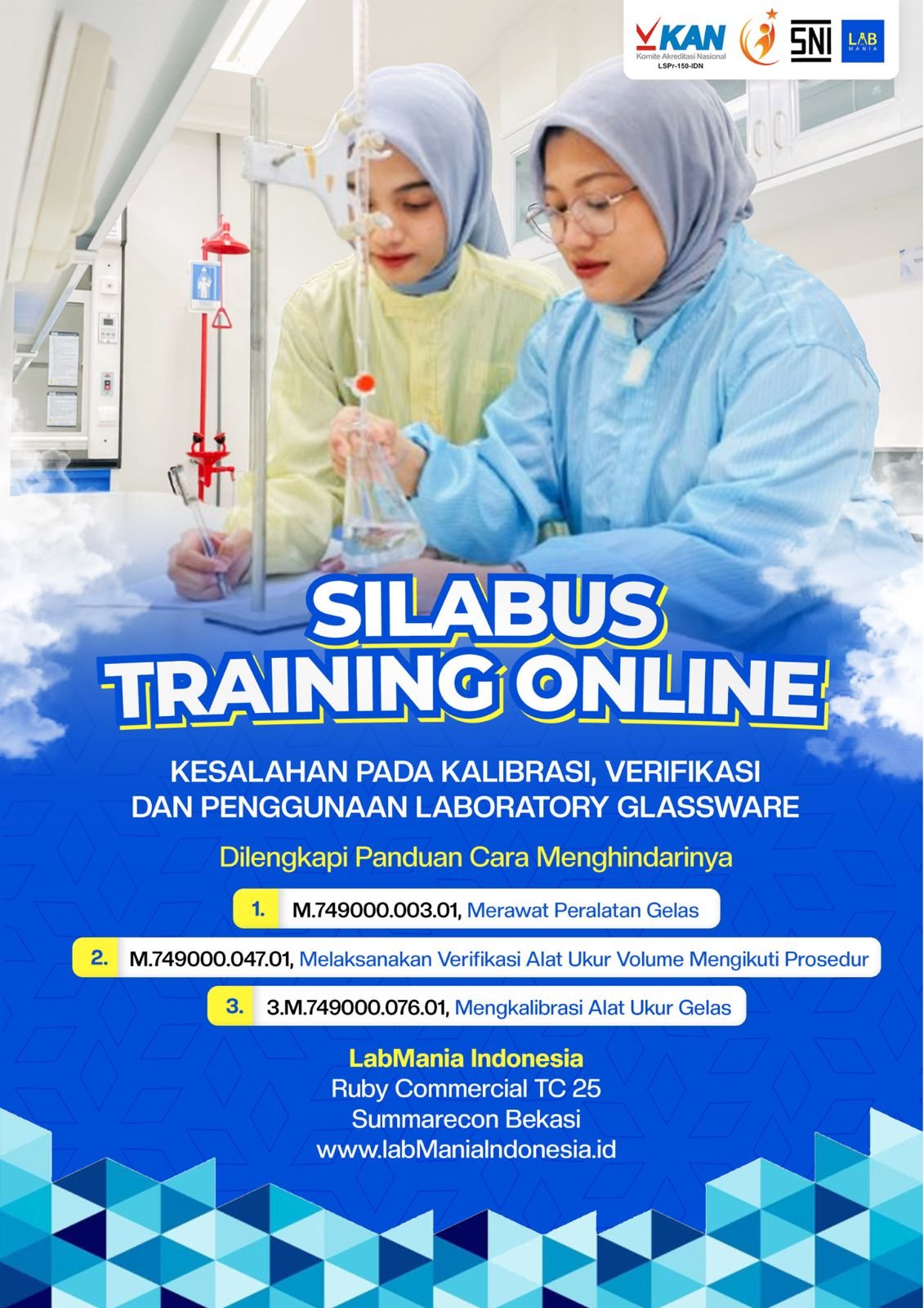 Masih bingung cara merawat, memverifikasi, atau mengkalibrasi alat ukur gelas? Labmania hadirkan silabus training online yang bisa kamu download gratis! Berisi unit kompetensi resmi sesuai SKKNI, lengkap dari perawatan hingga kalibrasi. Dilengkapi panduan menghindari kesalahan umum di laboratorium. Cocok untuk analis, teknisi, laboran, dan penyelia lab.