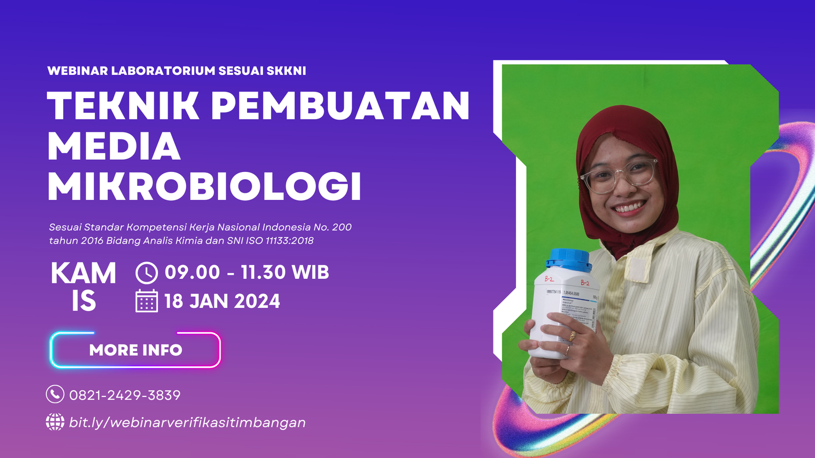 Oleh karena itu, Labmania Indonesia akan membantu meningkatkan kompetensi Sahabat Labmania dibidang laboratorium mikrobiologi dengan mengadakan Training Online Teknik Pembuatan Media Mikrobiologi dalam bentuk webinar untuk membahas lebih detail tentang langkah dalam melakukan verifikasi alat ukur volume sesuai dengan standar.